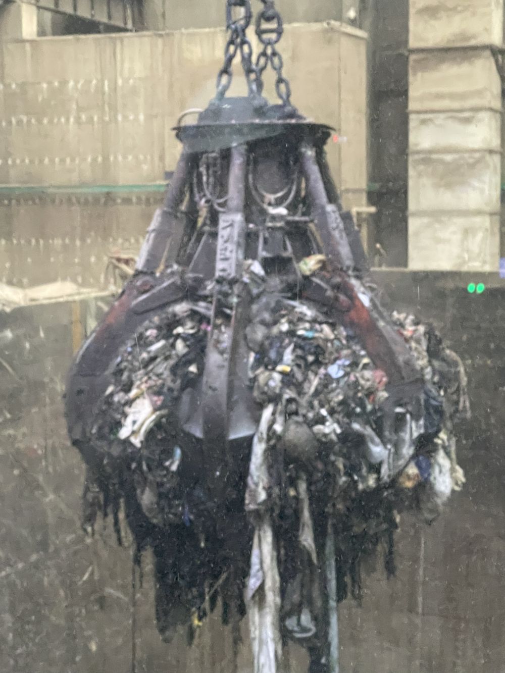生活垃圾焚烧投料口一爪5.5吨的大家伙。(徐蕾 摄)