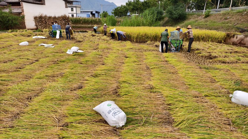 9月,涛源镇水稻高产实验田收获图。(供图)