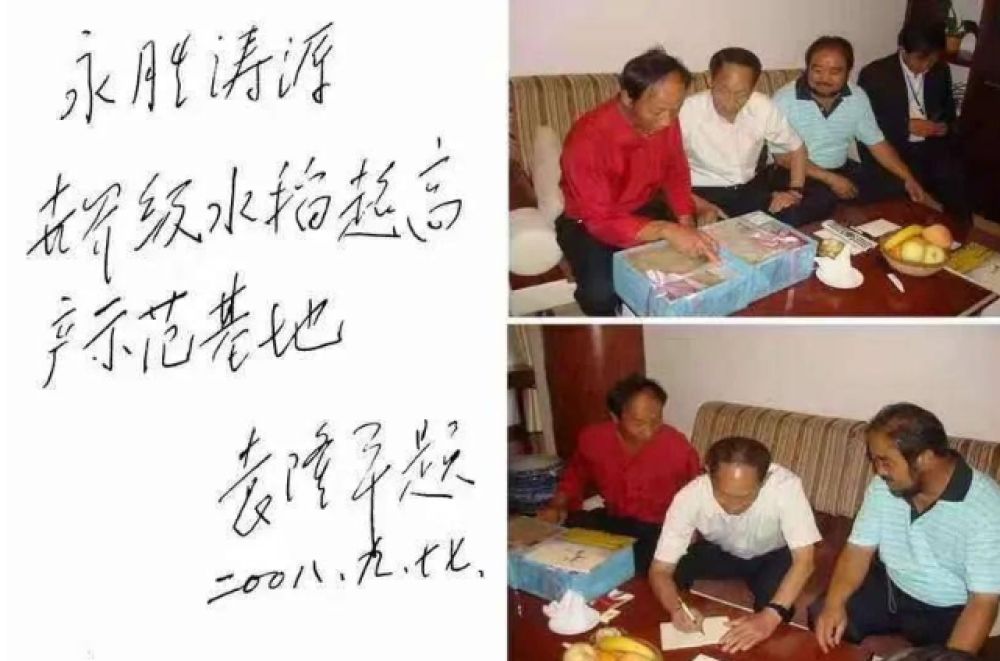 2008年,袁隆平为涛源题词。(资料图)