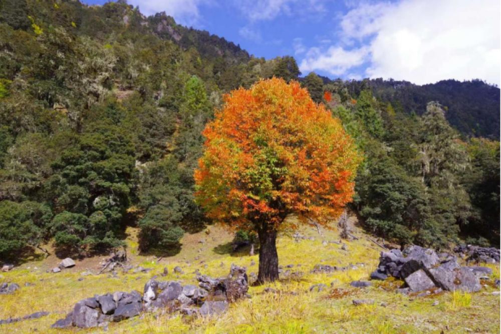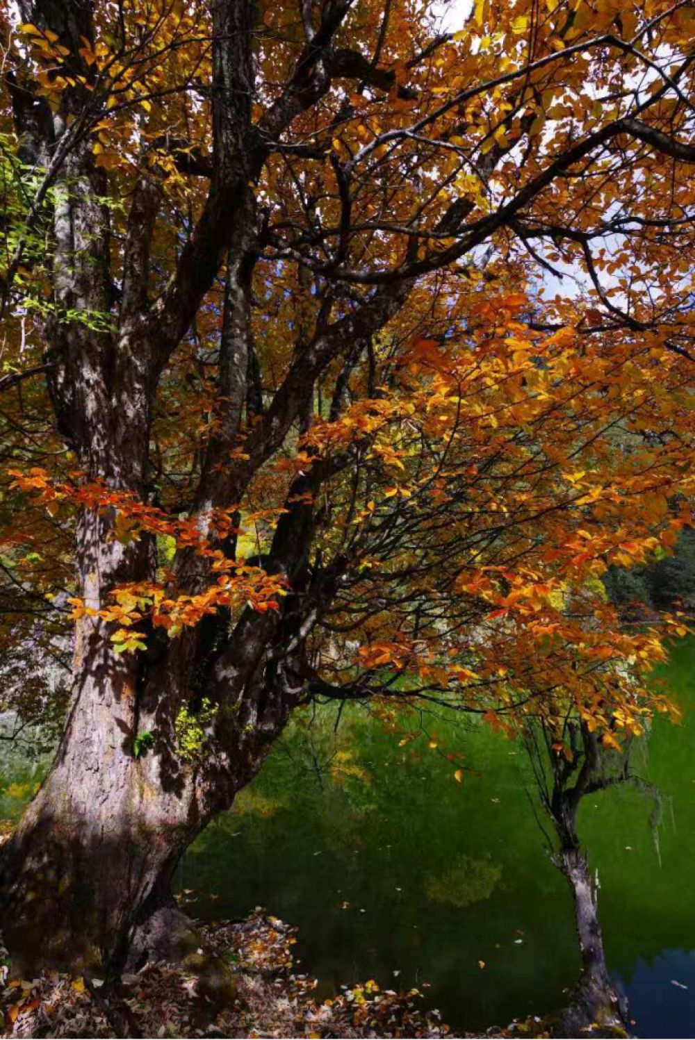 每年的秋末冬初,格拉丹海拔高气温低,树叶便会变成五颜六色,层林尽染,又到了穿越这片秘境的好时节。红红绿绿的树叶漫山遍野,铺天盖地,远看似五彩地毯从天际飞来,令人惊叹,与开阔的高山草甸风光、原始森林交相互应,相当震撼人心,成为当下格拉丹景区一道亮丽的风景线!