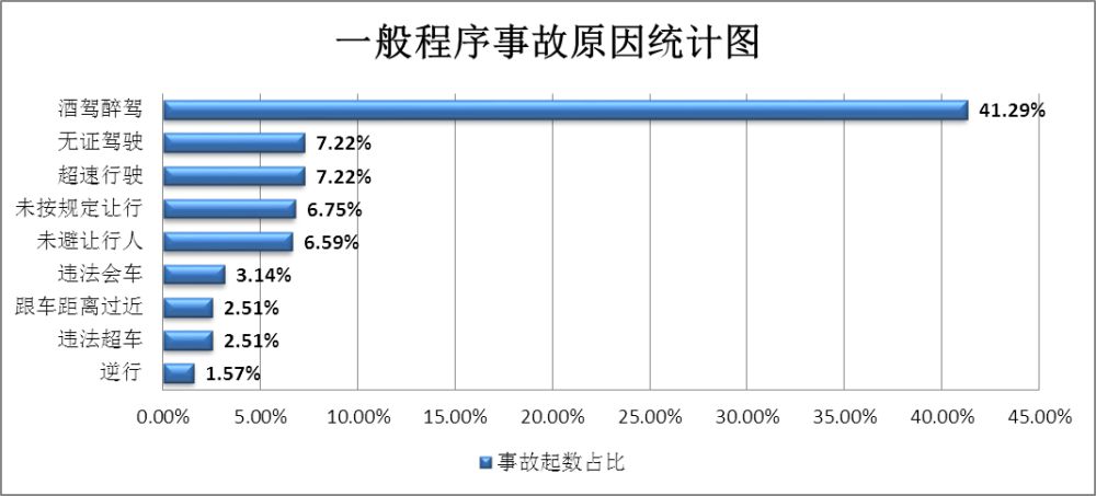 (四)酒驾醉驾、无证、超速等严重交通违法行为引发事故突出。酒驾醉驾、无证驾驶、超速行驶、未按规定让行、未避让行人等重点交通违法行为肇事突出。其中,酒驾醉驾肇事居首位,占总量的41.29%。(如图5所示)节日期间酒驾醉酒肇事占比高于平时(38.55%)2.74个百分点。