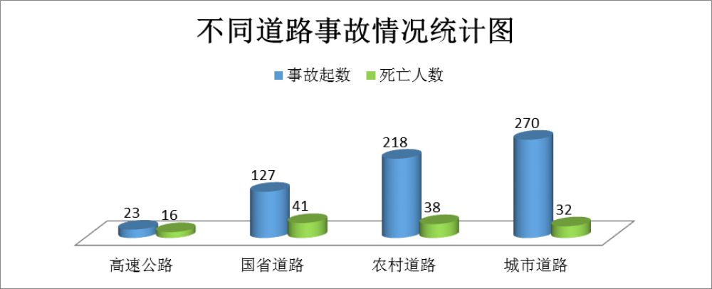 (三)普通国省道事故突出,高速公路事故较平时上升。普通国省道事故起数占国庆假期事故总数的19.91%。(如图4所示)高速公路事故起数占国庆假期事故总数的3.61%,高于平时(2.72%)0.89个百分点,特别是简易程序交通事故增幅较大,国庆期间各高速支队辖区简易程序事故日均96起,是平时日均15起的6.28倍。
