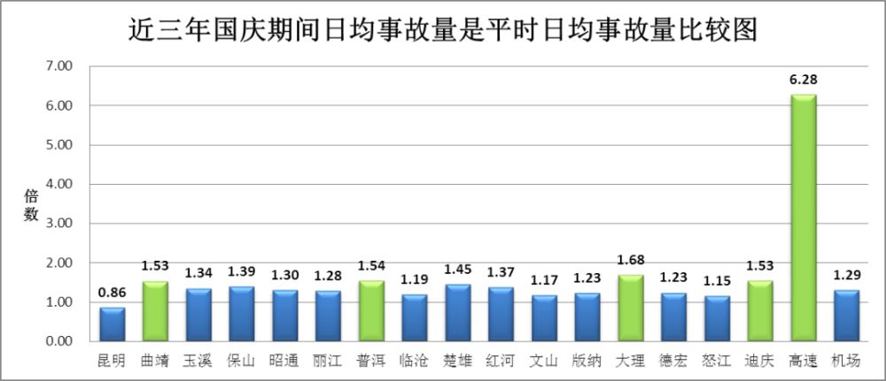图1  近三年国庆期间日均事故与平时日均事故对比情况