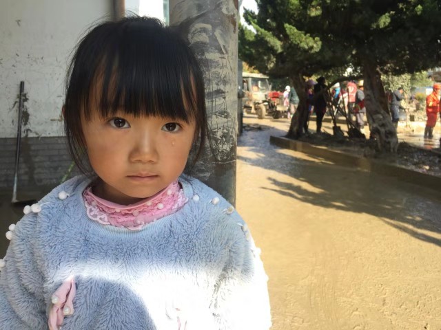 看着昔日充满欢声笑语的校园面目全非,照片上的这个小女孩,满脸忧愁,脸上还挂着未干的泪珠。看着让人心疼,鼻子发酸。