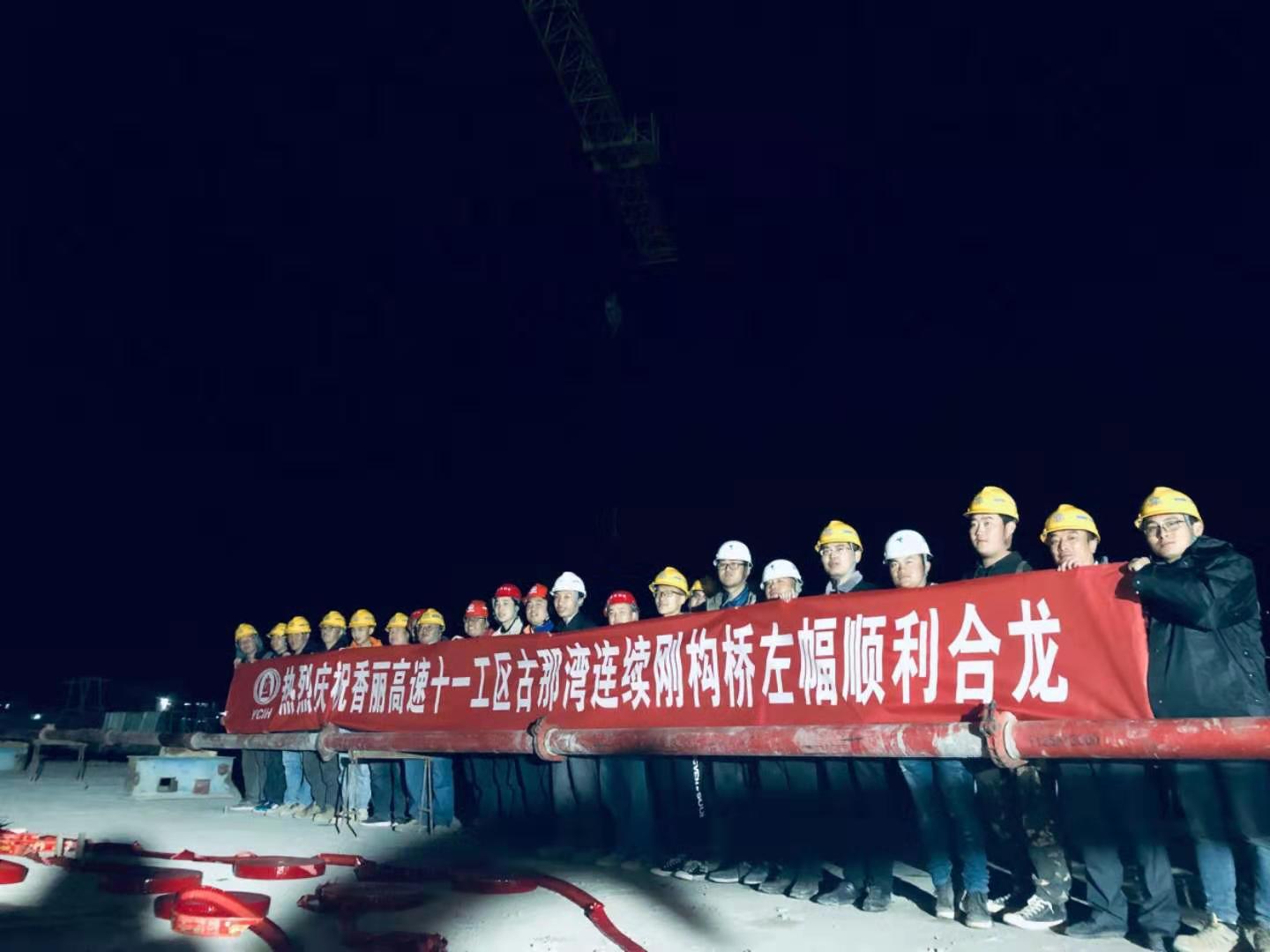 12月7日晚上21时,云南建投香丽高速古那湾大桥上施工人员冒着严寒,在灯光的照耀下对大桥左幅拉开了合龙浇筑的序幕,连续奋战5个半个小时后,8日凌晨2时30分,大桥左幅实现合龙,这标志着大桥主桥顺利合龙。