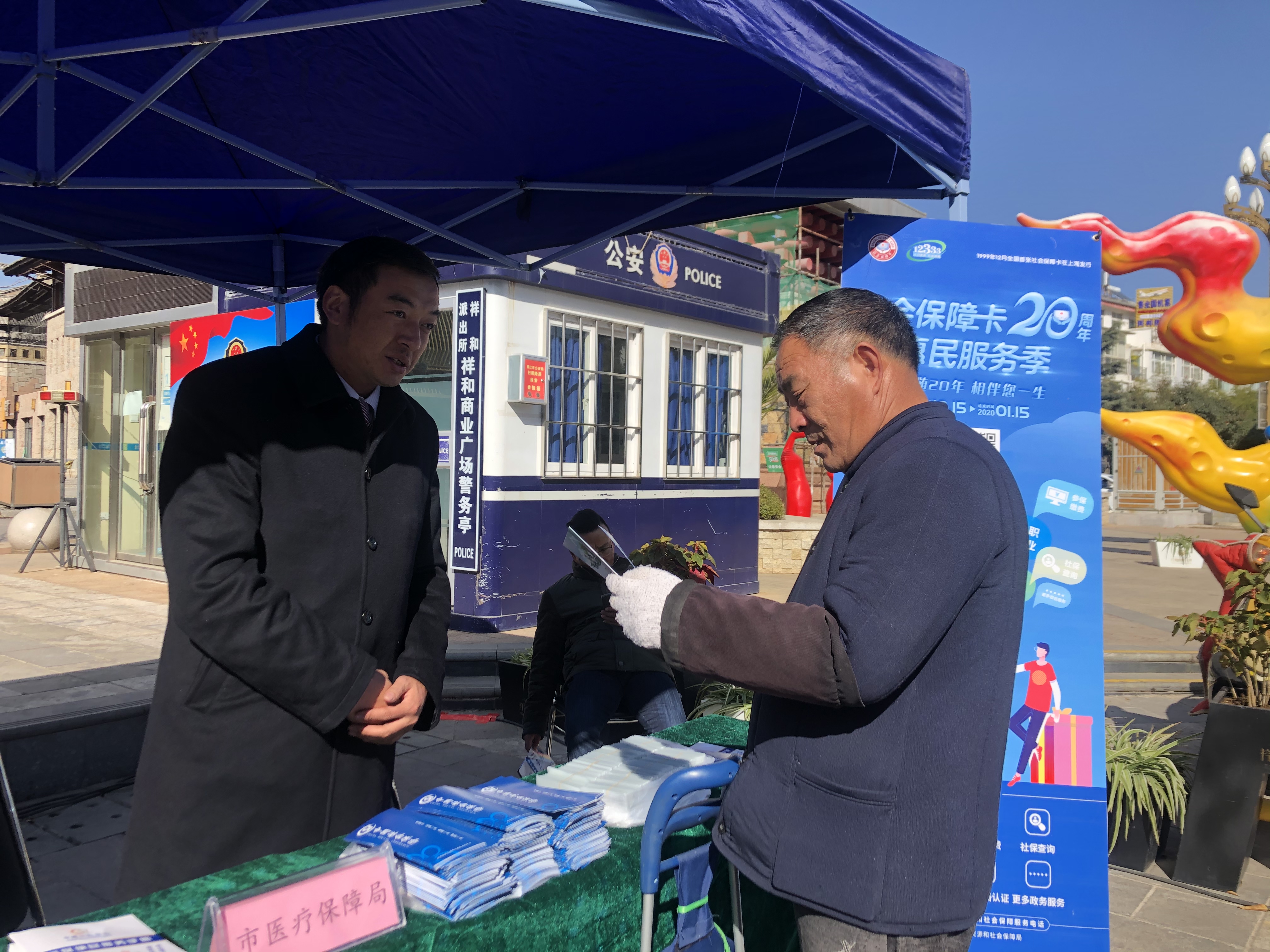 12月20号下午,丽江市人力资源和社会保障局、各大银行、各药店、一部手机手机办事通等部门在祥和商业广场举办了“社会保障卡20周年 惠民服务季”活动。