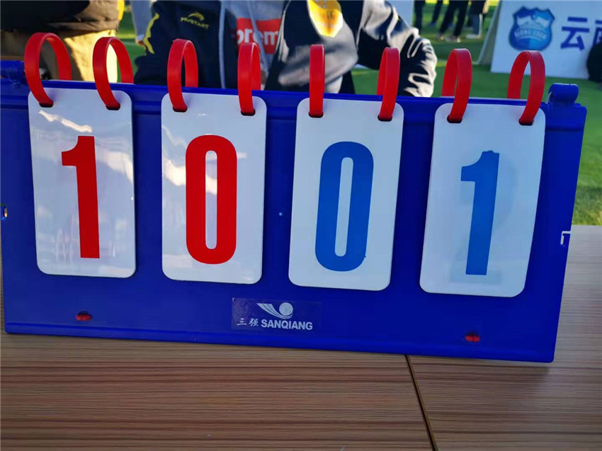 1个球、2个球、3个球……9个球,丽江拉若足球俱乐部的队员在比赛剩下不到5分钟的时间,踢进了9个球……而此时,女生队还没有任何进展, 我无法想象此时女生心里的感受,但就在吹响结束哨前30秒,女生队的杨凤萍一记迅雷不及掩耳之势的射门,球进了……