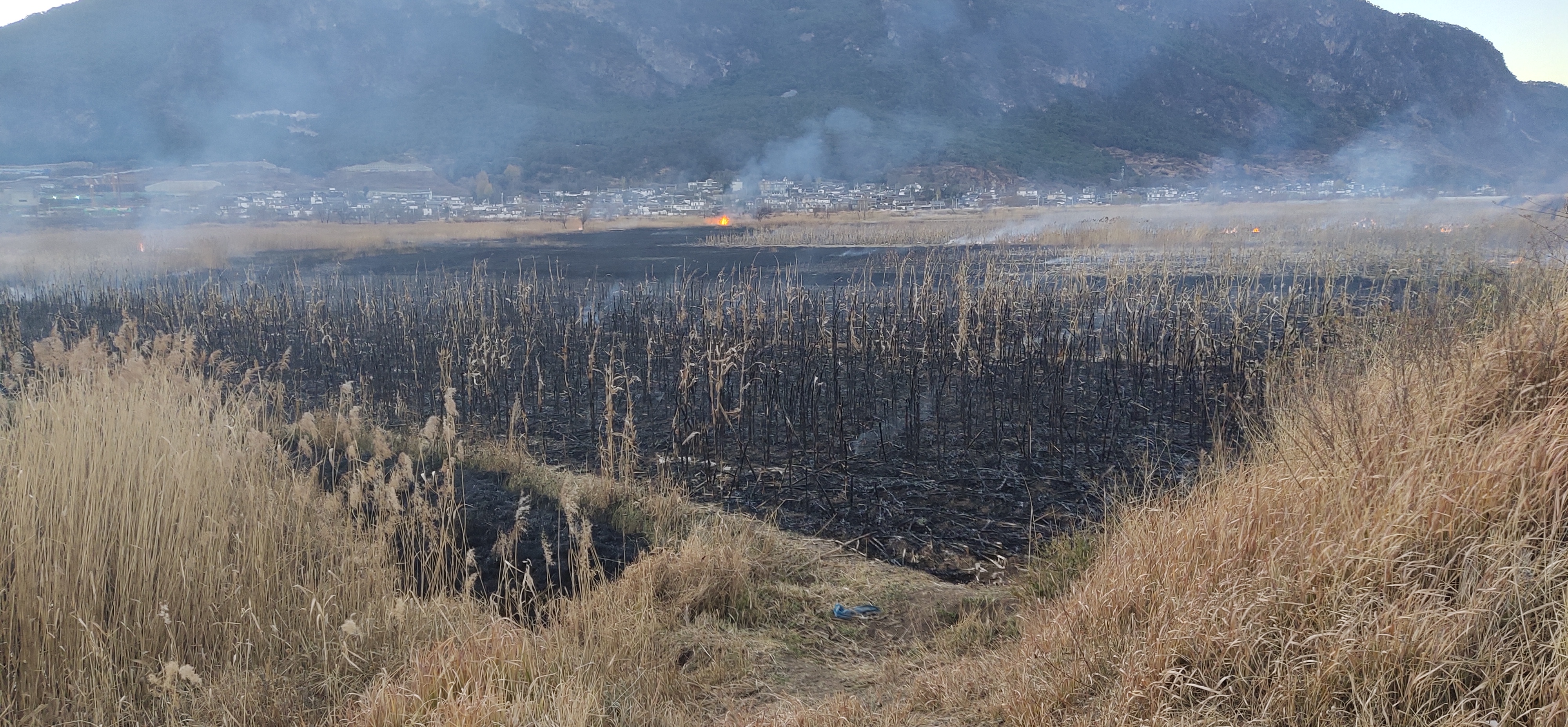 据悉,引起起火的原因为村民焚烧秸秆引起的,加之冬季风大,导致火势大范围蔓延,近12亩左右农田被烧。