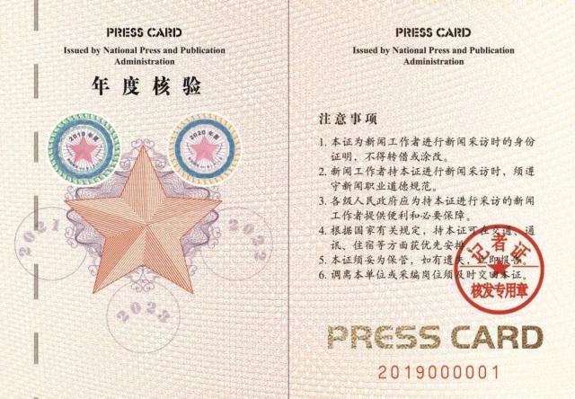 据了解,2019年版新闻记者证由国家新闻出版署统一印制,不收取任何费用,换发工作全部通过中国记者网的网络系统进行。换发期间,旧版新闻记者证继续有效使用。2020年3月31日后旧版将全部作废。