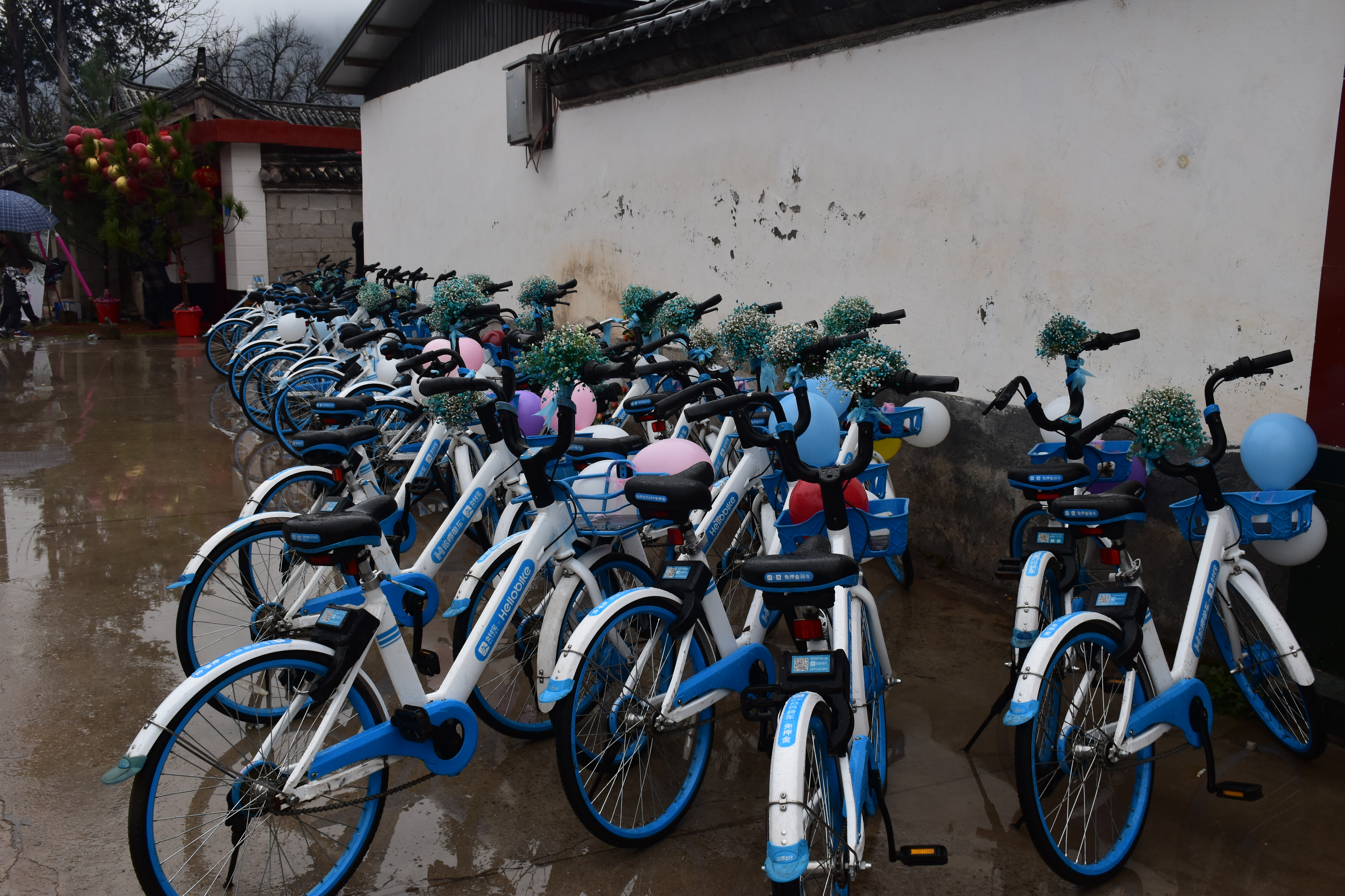 下午,娶亲队伍接上新娘,踩着共享单车穿过村庄,在众人的陪伴下,踏上幸福的归程。