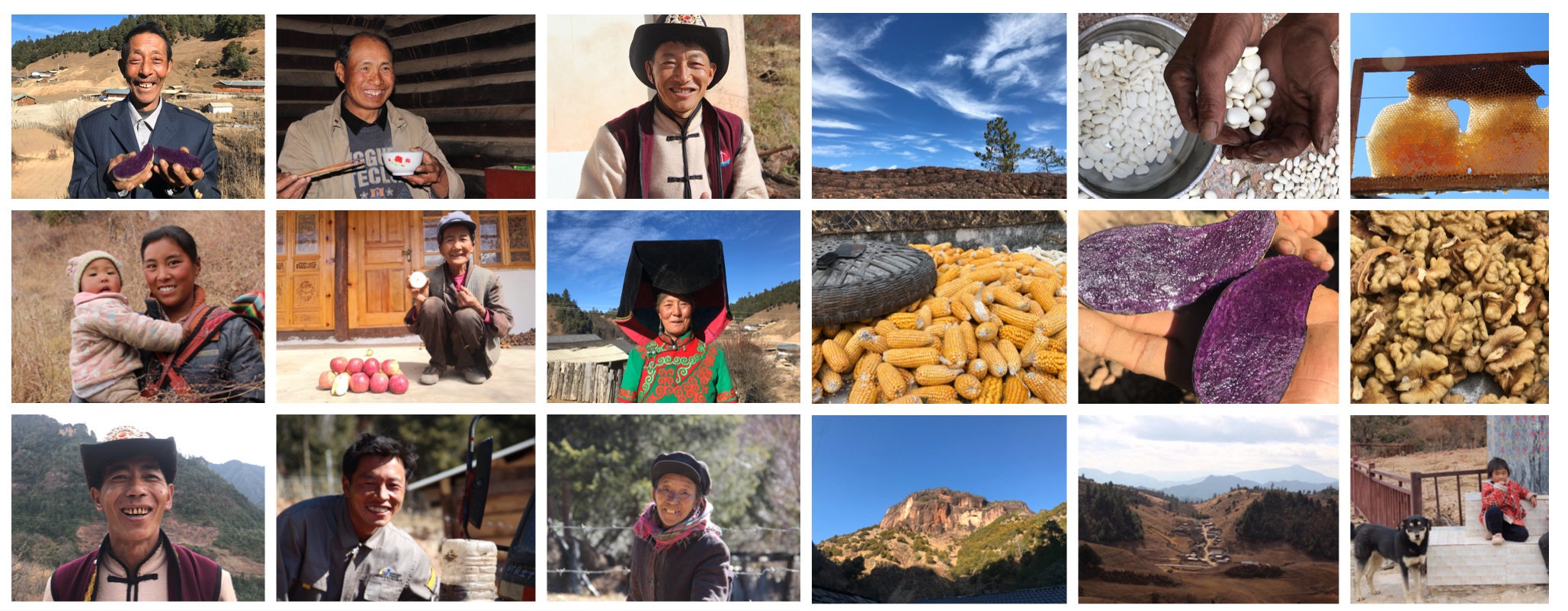 ▲美乐村核桃种植户乔耀、黎明村白芸豆种植户和胜龙、黎明村蓝莓种植户和万华、黎明乡中兴村木梨种植户和云