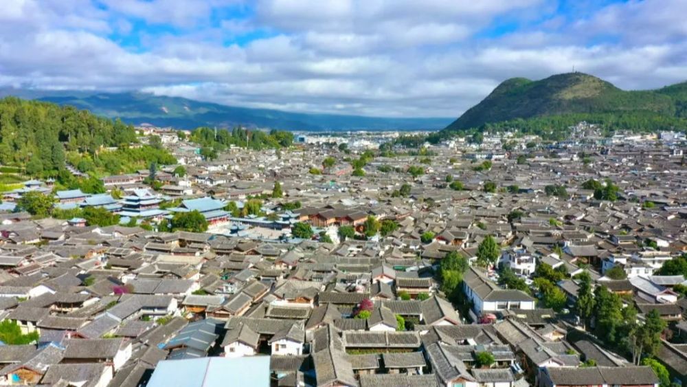 10月18日,丽江古城航拍图。(丽江融媒记者 廖浚宏 摄)旅游业还引领带动了全市整体发展,从1995年至2023年底,全市地区生产总值从18.39亿元增加到620.1亿元,增长33.3倍。其中,三产增加值从5.81亿元增加到309.16亿元,增长53.2倍,旅游业占三产的比重超过70%;城镇居民收入从3295元增加到41473元,增长12.5倍;农村居民收入从560元增加到14753元,增长26.3倍;全市游客接待量从84.5万人次增加到5402.35万人次,增长63倍;旅游业总收入从3.3亿元增加到1078.26亿元,增长326倍。一组组亮眼的数据背后,是丽江市践行“中华民族一家亲、同心共筑中国梦”的生动写照,也是多民族聚居、多元文化共融,各民族血脉相连、经济相依、文化相融、守望相助、和睦共存的美好生活真实写照。