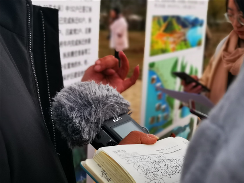 可就算是再迷人的风景也无法影响大家采访的专业性和热情。记者们紧紧地围在受访者身边,提出的问题一针见血,打开手机的录音功能后,手上的笔尖也没有停止挥舞,深怕遗漏一丝一毫的细节,记者们把“提问”俨然演变成了一种艺术,每一个问题都幻化为优质新闻稿件的元素,从他们认真专注的面庞上我仿佛看到记者这份职业闪烁的光芒——“深入”、“专业”、“敏锐”。