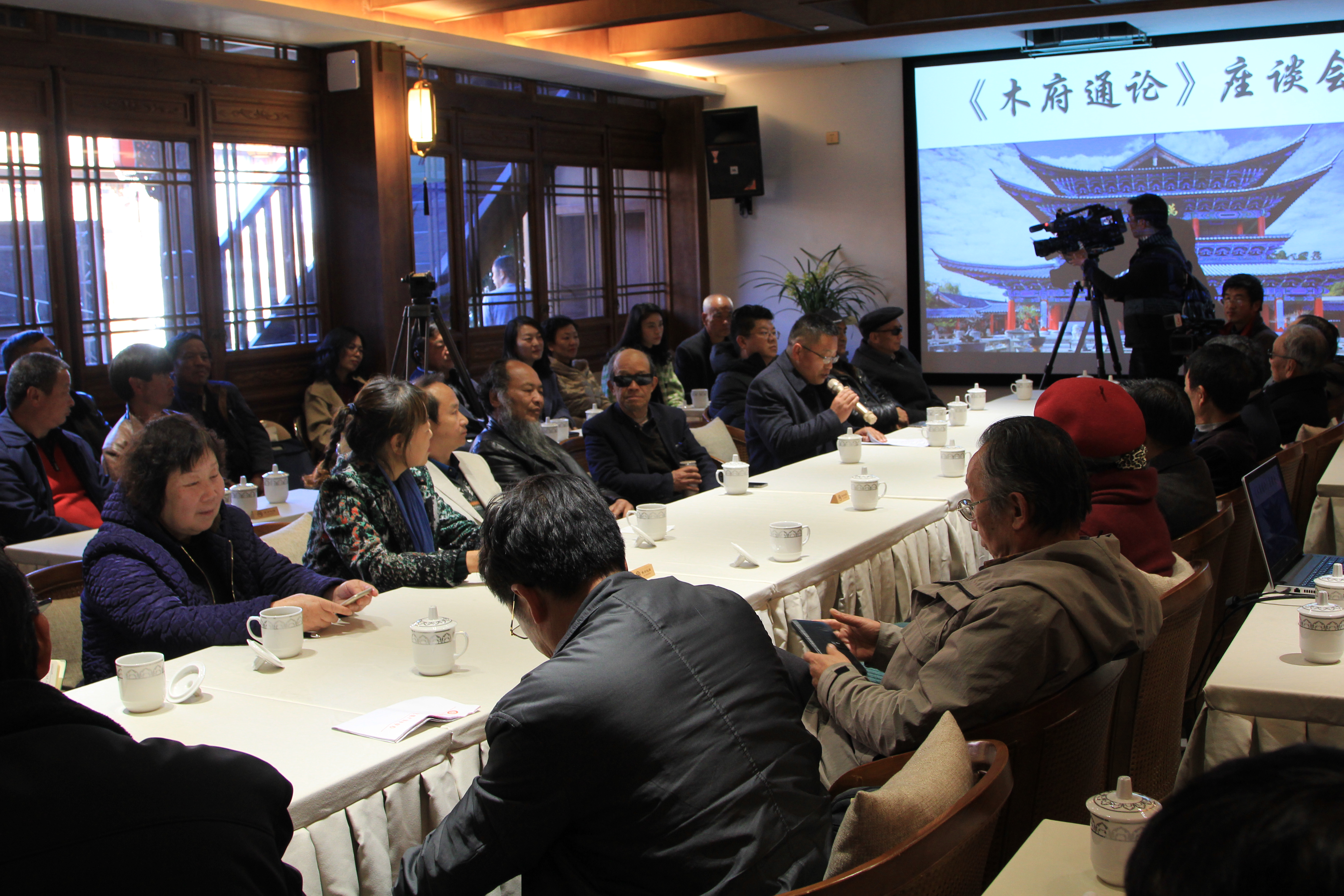 在当天活动中,黄乃镇先生还向云南省社会科学院、古城区史志办、古城区政协文史委以及市、区、县图书馆和几所学校进行图书捐赠。首发仪式结束后丽江文化界人士还就《木府通论》举行了座谈会。