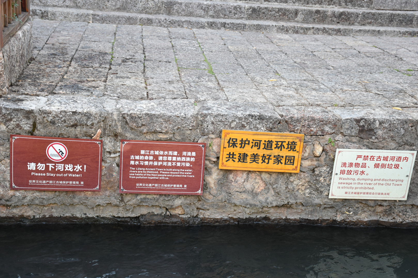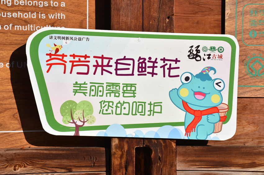 “芬芳来自鲜花,美丽需要您的呵护”、“请勿下河戏水”、“不要破坏古建筑”、“严禁乱排污水”……每隔一小段,景区都会有文明旅游标语和宣传牌,通过多种形式推送给游客,呼吁游客文明旅游,在游览过程中时刻提醒游客自觉收集垃圾杂物,不随手乱扔果皮纸屑,不随意乱刻乱划,保护景区环境,引导游客文明旅游。