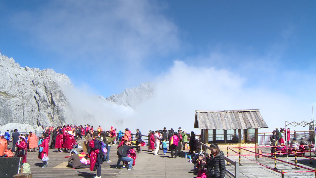 元旦假期当天,记者在玉龙雪山景区看到,景区地面干净整洁、售票检票窗口秩序井然,工作人员正在耐心地为游客提供指引服务,游客们也没有大声喧哗、乱扔垃圾等不文明举动,“文明旅游”让圣洁的玉龙雪山,变得更加赏心悦目。