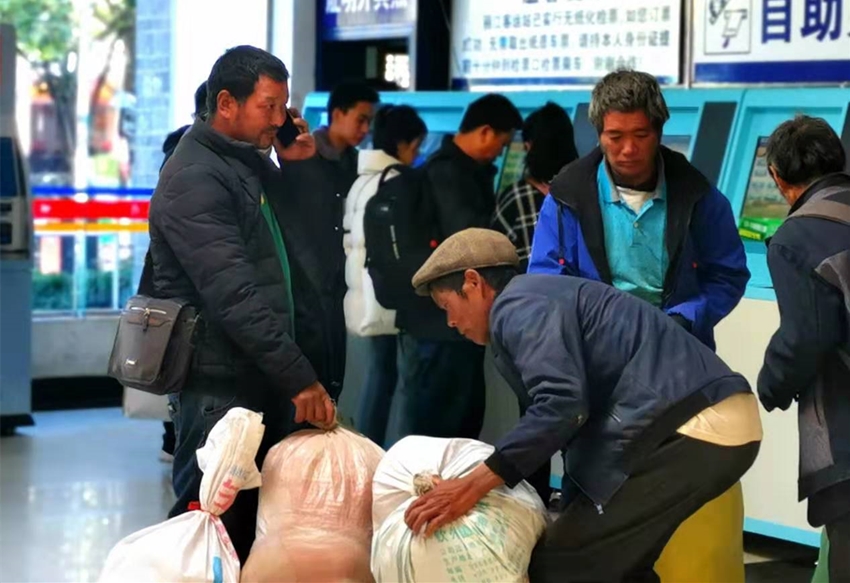 虽然只是春运第一天,丽江客运站早已人山人海,急着“回家过年”的氛围也提早点燃。