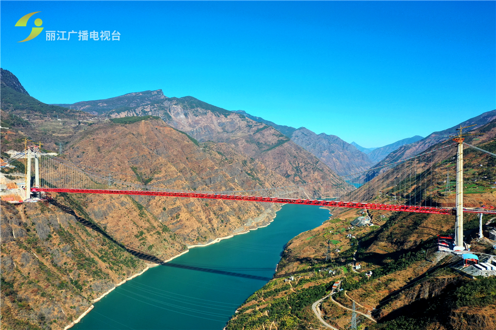 大桥为主跨1386米的单跨双铰板桁结合式钢桁梁悬索桥,桥面与谷底河面垂直高差达330米,主塔塔顶距江面近500米,为跨越金沙江而设。是世界最大跨径山区峡谷悬索桥,工程量大、结构复杂、技术难度高、施工困难多。大桥2017年4月5日开工建设以来,经过千余天艰苦奋战,先后完成了大桥主塔桩基承台浇筑,大桥主塔浇筑和大桥主塔猫道架设,2019年10月18日大桥钢桁梁开始吊装,2020年1月15日大桥顺利合龙。