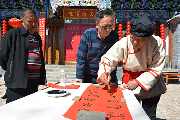 “2017年就来到丽江了,一直十分喜欢这里的文化,纳西族是一个文化底蕴十分深厚的民族,很早以前就被东巴象形文字吸引了,自己也经常钻研东巴文化,听说今天这里会请很有名望的老东巴书写东巴春联,我就过来了。”在丽江开客栈的四川籍经营户毕文学告诉记者。
