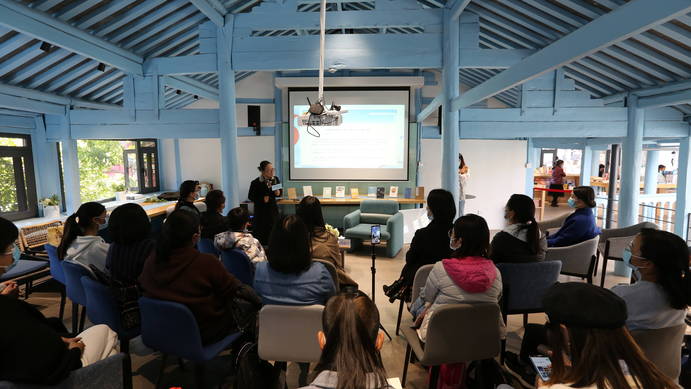 讲座采取线上限额报名的方式,预约了50名线下听众,邀请到了中科院儿童发展与教育心理学硕士老师凡淑平,进行“双减之下,如何做一名智慧型家长”为主题的讲座。