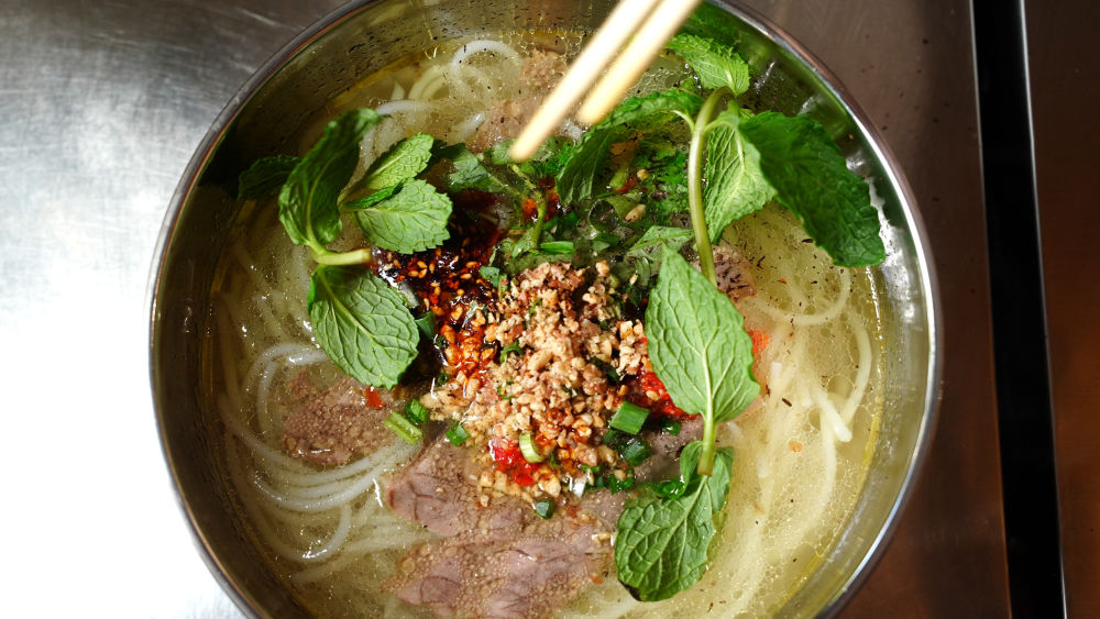 蘸水是牛扒呼的点睛之笔,店内备好鲜薄荷、木姜子、香柳等多款滇西特色配料,食客可根据个人口味自行调配,浇上一勺热乎牛肉汤,酸辣鲜香,适配软烂牛肉,口感层次直接拉满。