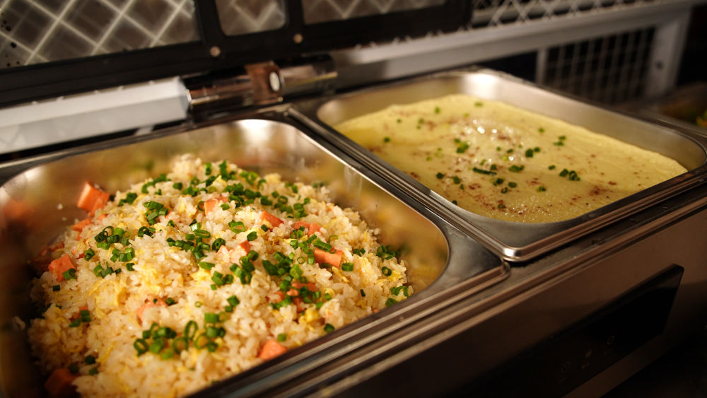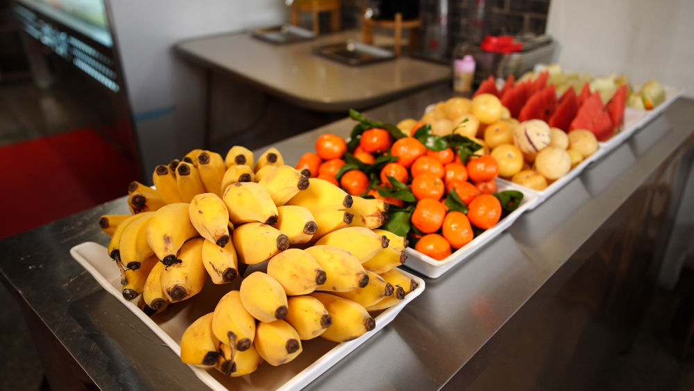 自助区近30种鲜蔬可随意取用、不限量畅吃,还搭配4—5种新鲜水果、2款爽口饮料,更有炒饭、汤圆、凉菜、小吃等免费畅享,荤素搭配均衡,性价比直接拉满。