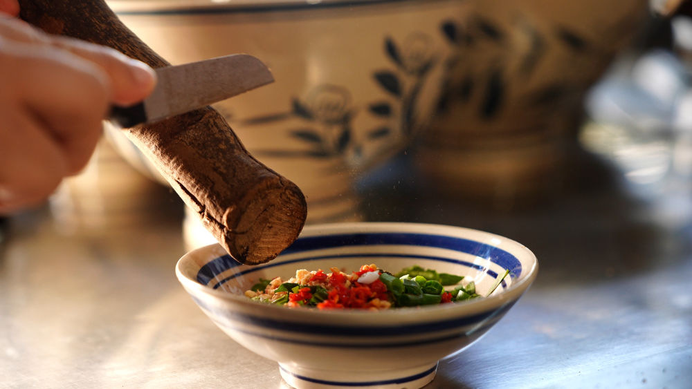 牛圈·雲M牛扒呼火锅制作蘸水(丽江融媒记者 桑震宇 摄)