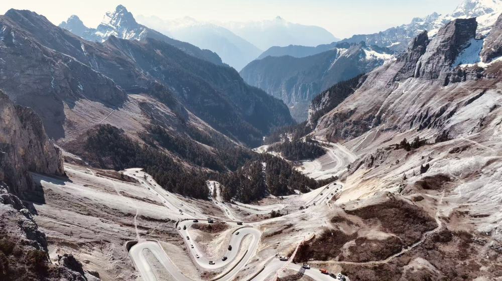 巴拉格宗景区的“天路108”以108道发卡弯为核心标识,串联起千年菩提、香格里拉大峡谷、巴拉村、香巴拉佛塔等核心景点。转过弯就能撞见翻涌的云海,抬头可见圣洁的雪山巍峨矗立,低头是壮阔的大峡谷蜿蜒向前,千年菩提静静伫立,古老的巴拉村掩映在群山之间,香巴拉佛塔在云端诉说着传奇。